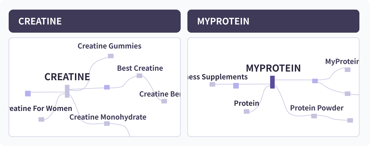 Through search paths, you can identify various problems that consumers try to solve through search, as well as products they compare during their journey. When you want to compare your brand or product’s search path with that of a competitor, use Keyword Comparison. You can view the search paths of two keywords on a single screen to see differences in search flow and intent.