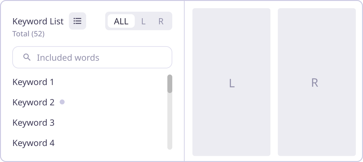 In the Keyword List, you can check which keywords appear in the search paths. You can review them in five main ways: