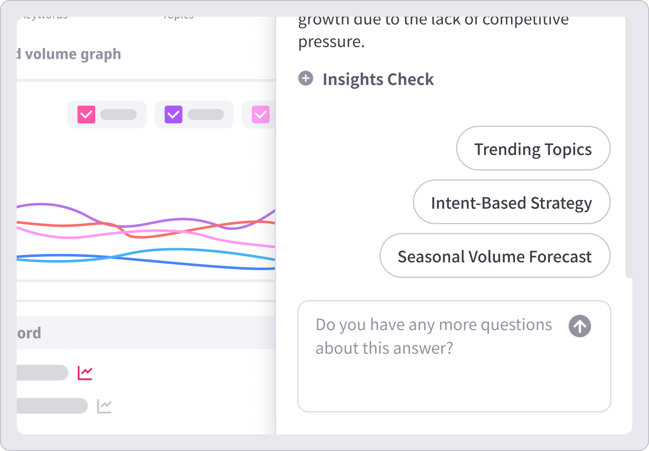 Provides search volumes and reference URLs to explain why the AI inferred those specific questions.