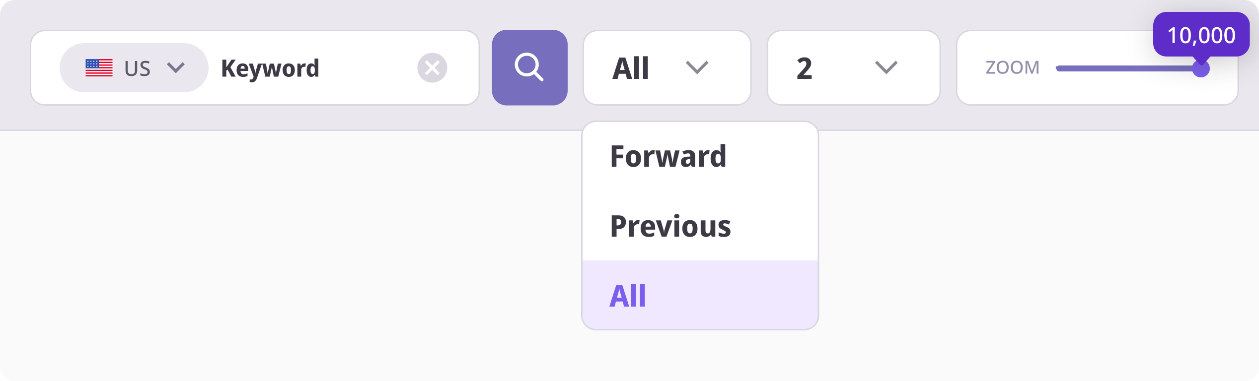 You can set the maximum number of keywords to search (up to 10,000).Example: Moving the Zoom slider to the right will display more keywords.