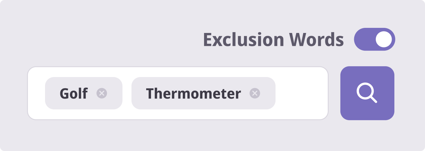 For example, when analyzing RTD (ready to drink),Query Finder might also show unrelated terms like golf RTD or thermometer RTD.You can simply enter “golf” as an exclude word, and those unrelated results will be removed.