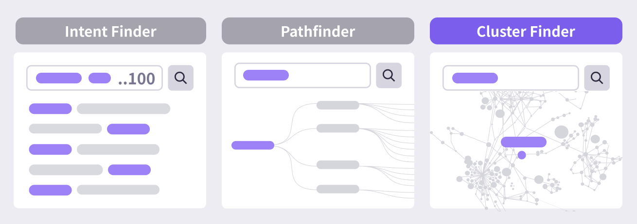 ListeningMind’s Cluster Finder analyzes these real-world connections to group similar-intent keywords into coherent clusters.