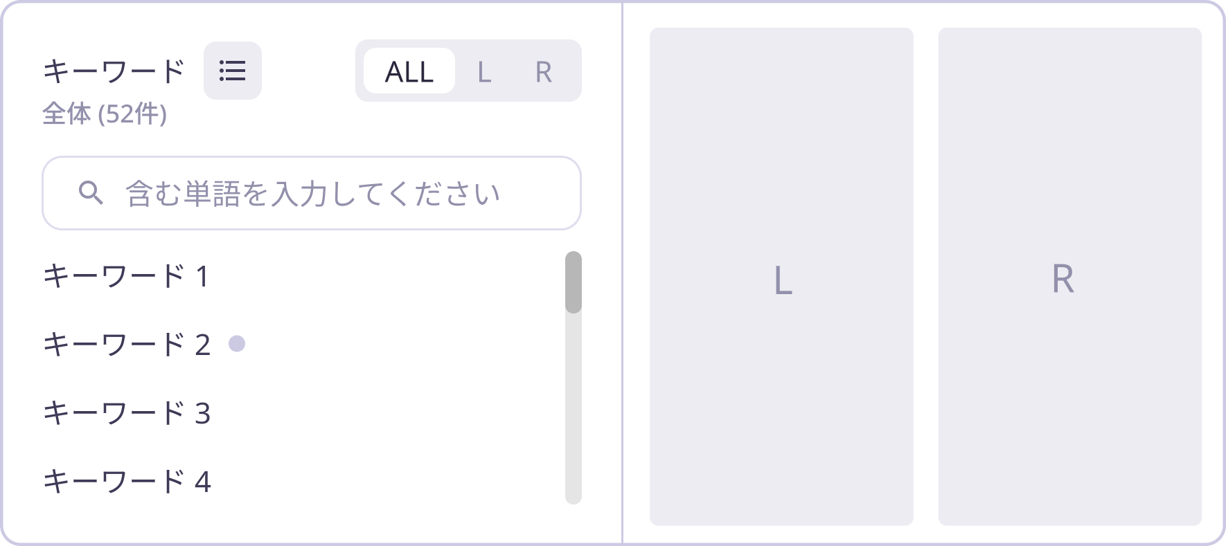 一覧ボタン | キーワード一覧を詳細表示 |