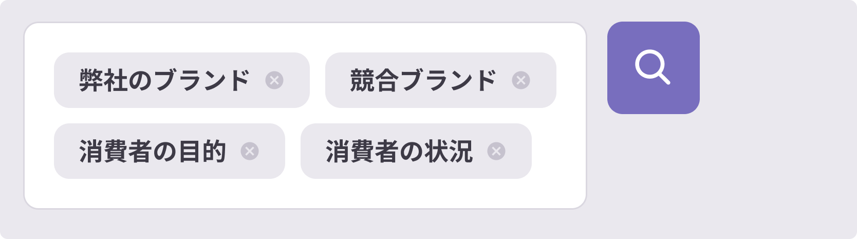 クエリファインダーは、入力した検索語を含むすべての関連検索キーワードを収集します。そのため、ブランド名・カテゴリ・目的など、複数のキーワードを組み合わせて入力するほど、分析の範囲が広がります。このような統合的な検索を活用することで、特定市場全体を横断するキーワード構造を把握できます。