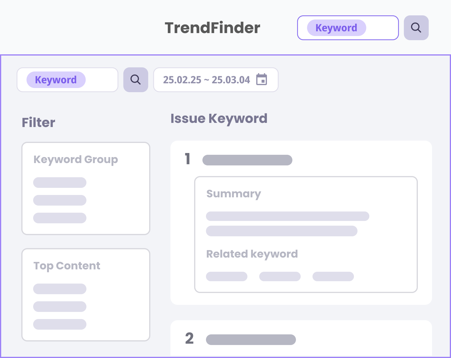 キーワードグループ:話題のキーワードの中で前の単語が同じものをグループ化し、最大100個提供(‘>’ アイコンをクリックすると、詳細ページで該当グループの日別推移を確認することができます。)