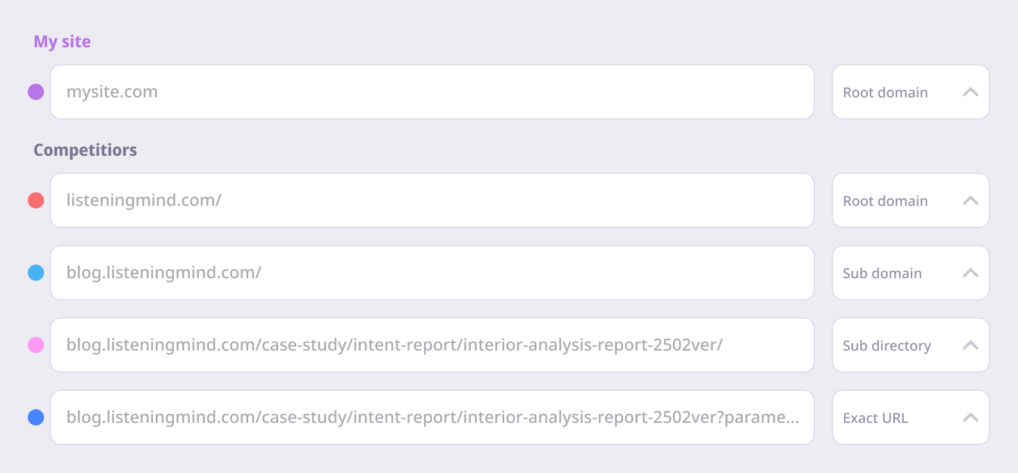 자사와 경쟁사 도메인을 구분해 입력합니다.