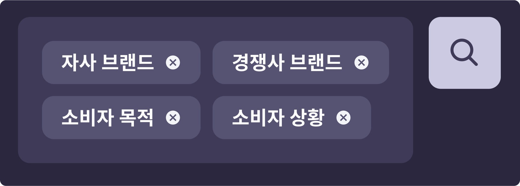인텐트파인더는 입력한 질의어가 포함된 모든 연관 검색어를 수집하므로, 브랜드명·카테고리·목적 등 여러 키워드를 함께 입력할수록 분석 범위가 넓어집니다. 이러한 통합 검색을 통해 특정 시장을 아우르는 키워드를 확인해 보세요.